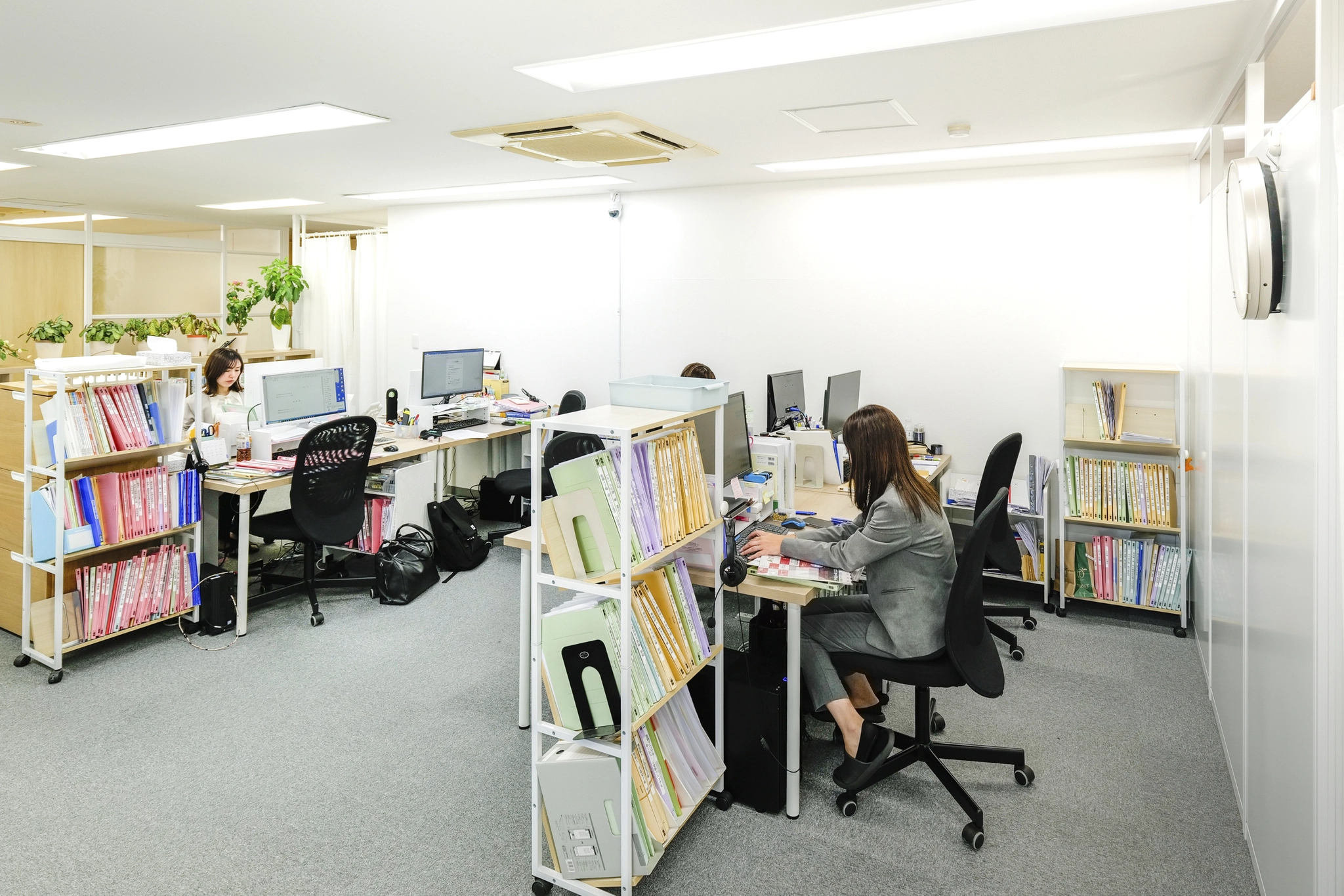 有資格者と補助者がともにコミュニケーションを取り合いながら、主体的に業務に取り組んでいる環境です。
