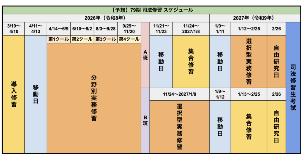 本記事では、「79期(2026年)司法修習のスケジュールや詳細」として、
