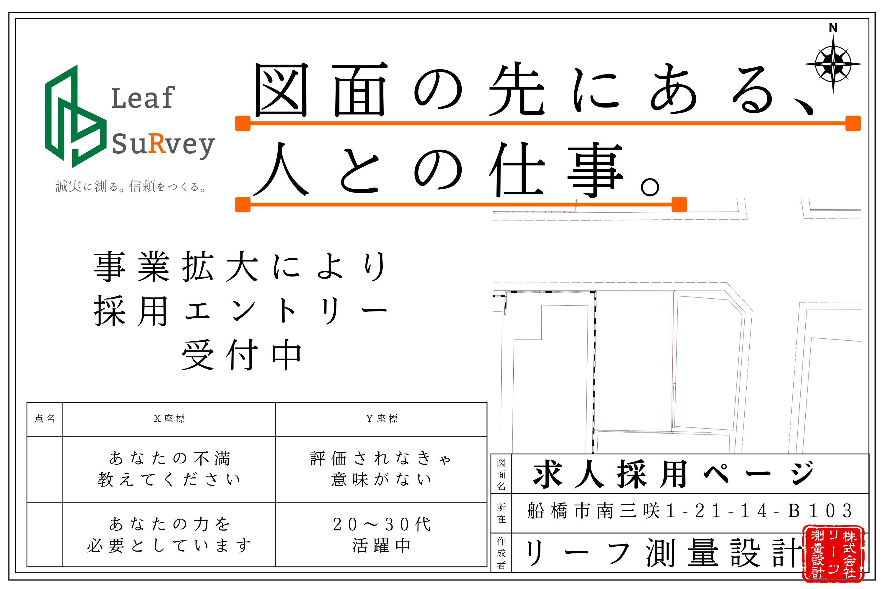 募集職種 | 土地家屋調査士 / 正社員(契約期間の定めなし) 土地家屋調査士補助 / 正社員(契約期間の定めなし) |