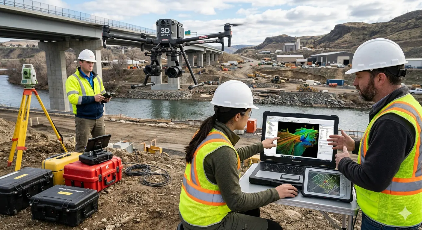 3Dレーザー測量やドローン測量などの最新技術を導入し、業務効率化を推進しています。